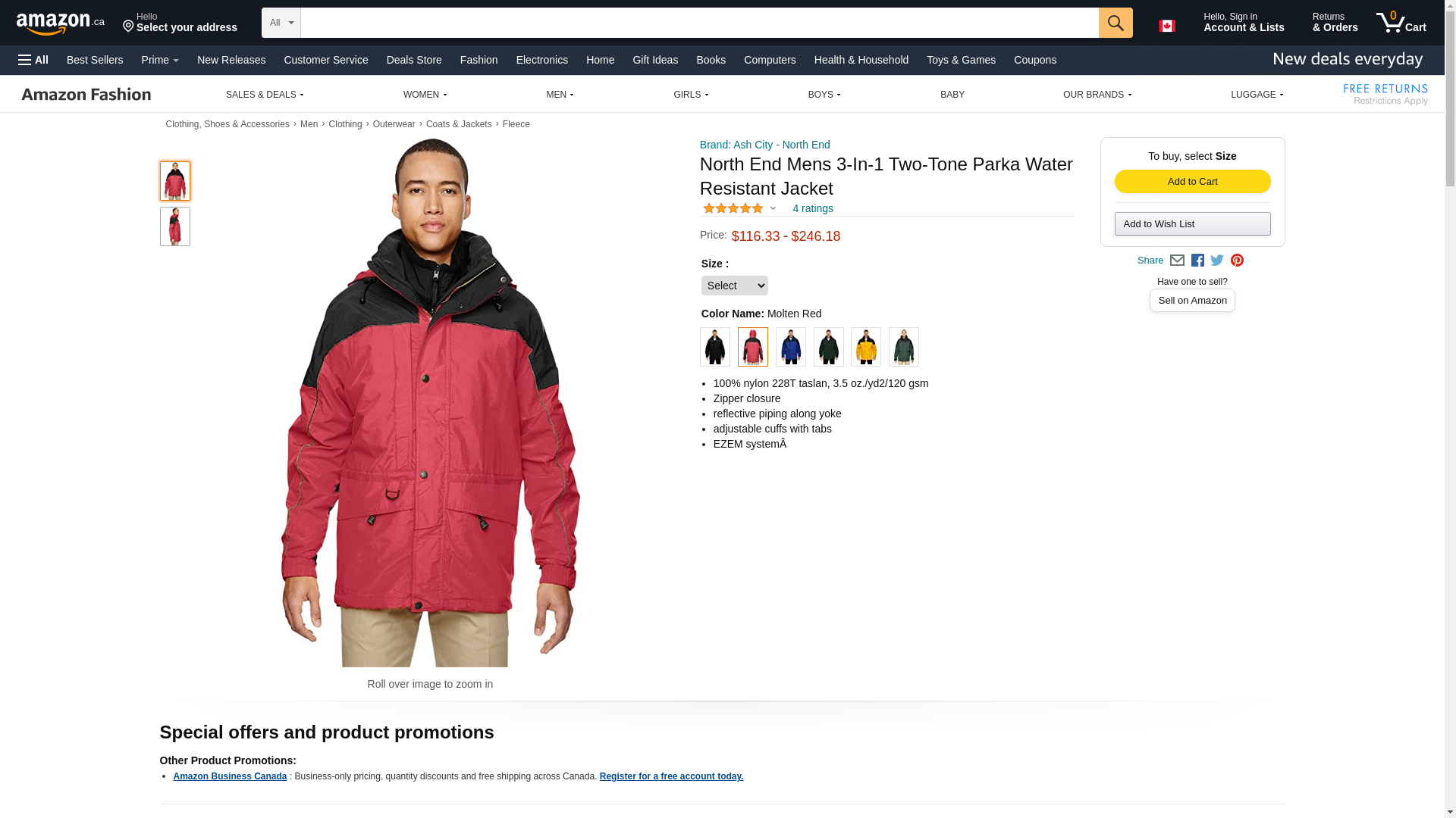 North End Men's 3-In-1 Two-Tone Zip-Off Hood Parka, Molten Red 751, XXXX-Large