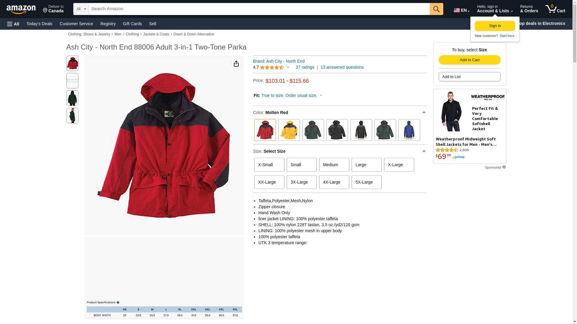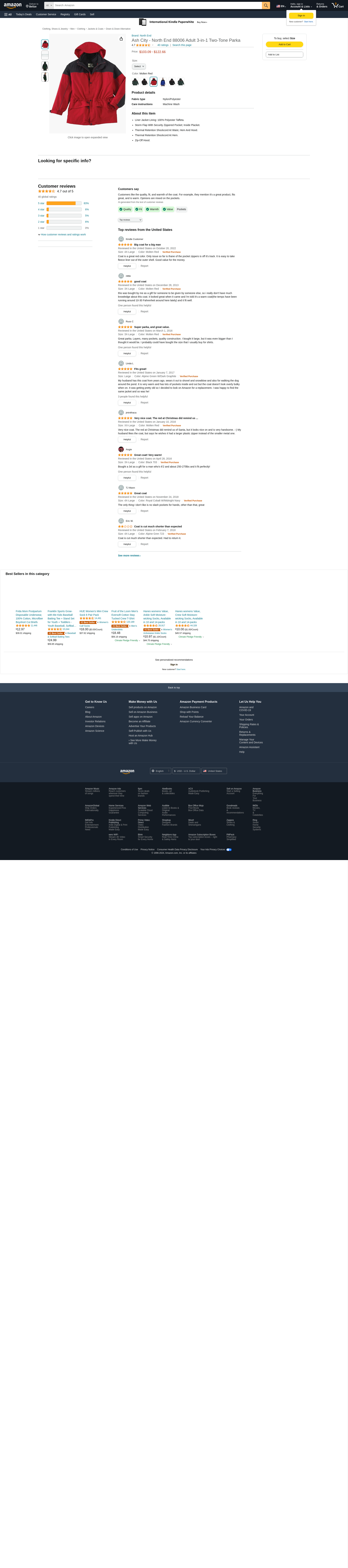 North End Men's 3-In-1 Two-Tone Zip-Off Hood Parka, MOLTEN RED 751, X-Large
