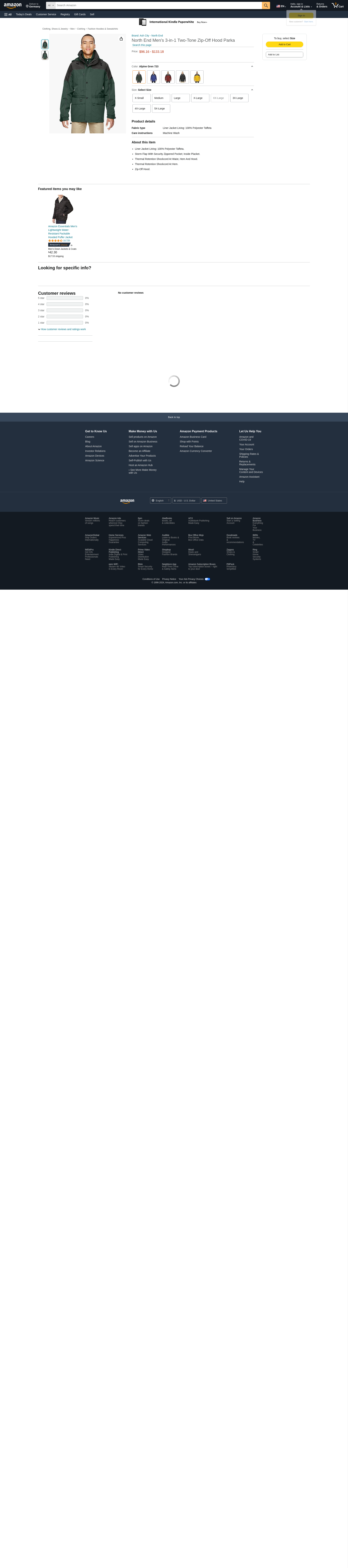 North End Men's 3-in-1 Two-Tone Parka, 2XL, Alpine GREN 723