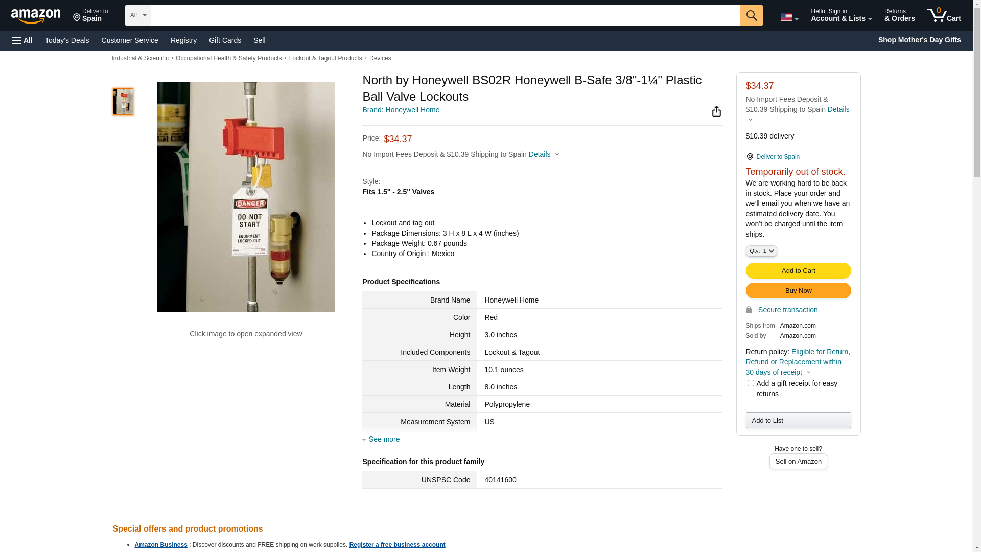 North by Honeywell BS01R Honeywell B-Safe 3/8"-1¼" Plastic Ball Valve Lockouts