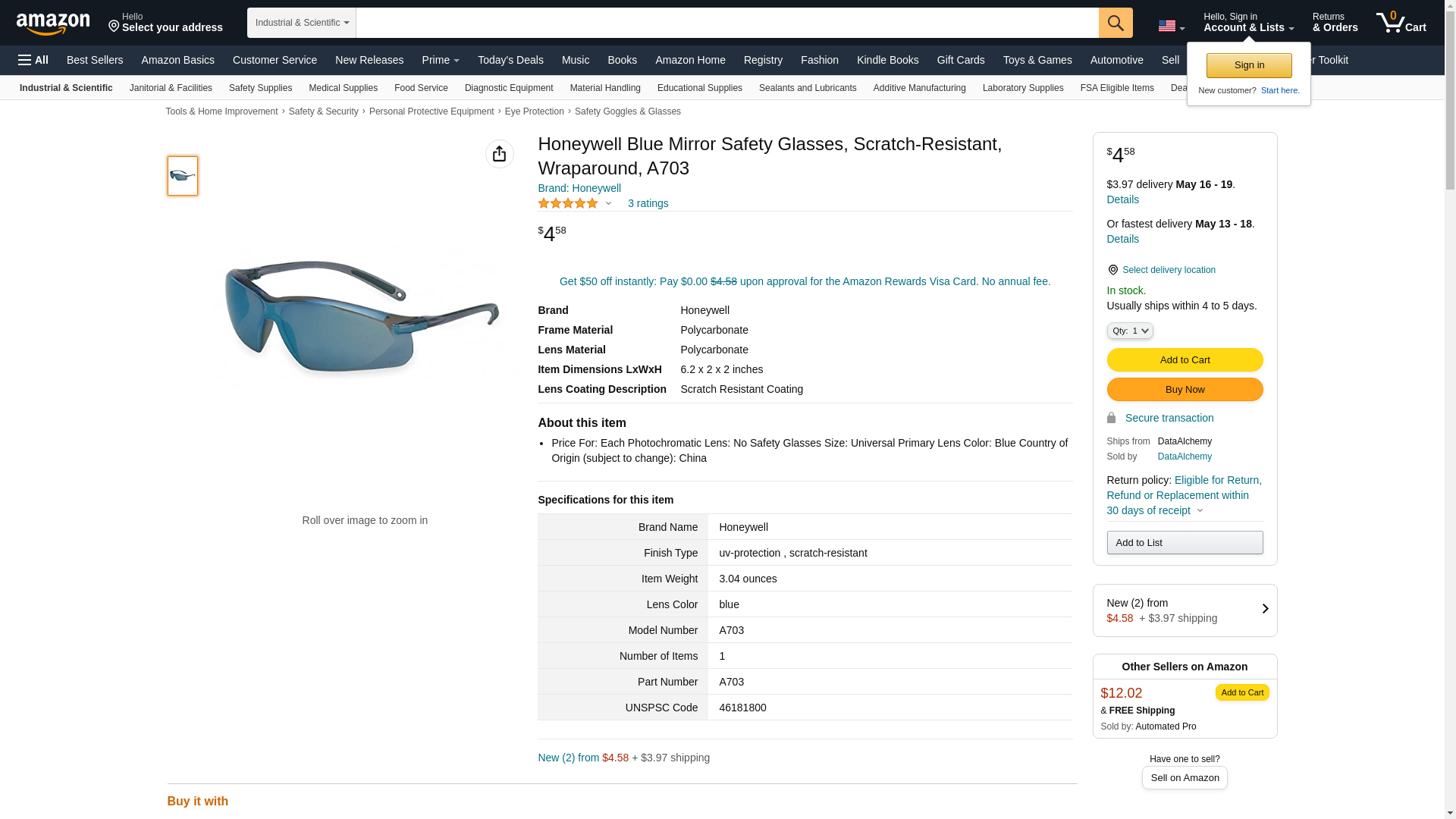 | Feature | <b>Price For:</b> Each <b>Photochromatic Lens</b>: No <b>Safety Glasses Size</b>: Universal <b>Primary Lens Color</b>: Blue <b>Country of Origin (subject to change)</b>: China |