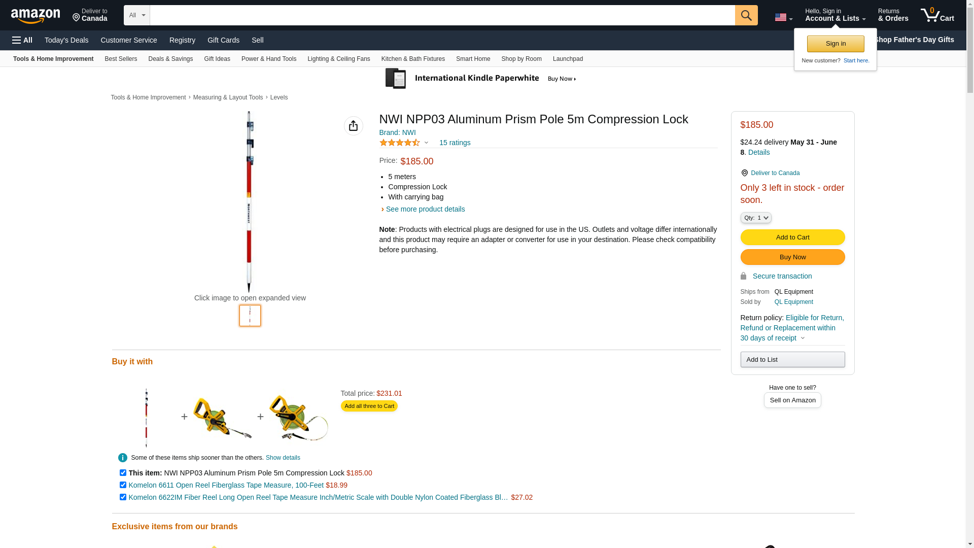Toolschest.com|Toolschest.com. Northwest Instrument NPP03 5 m Aluminum Prism Pole Compression Lock