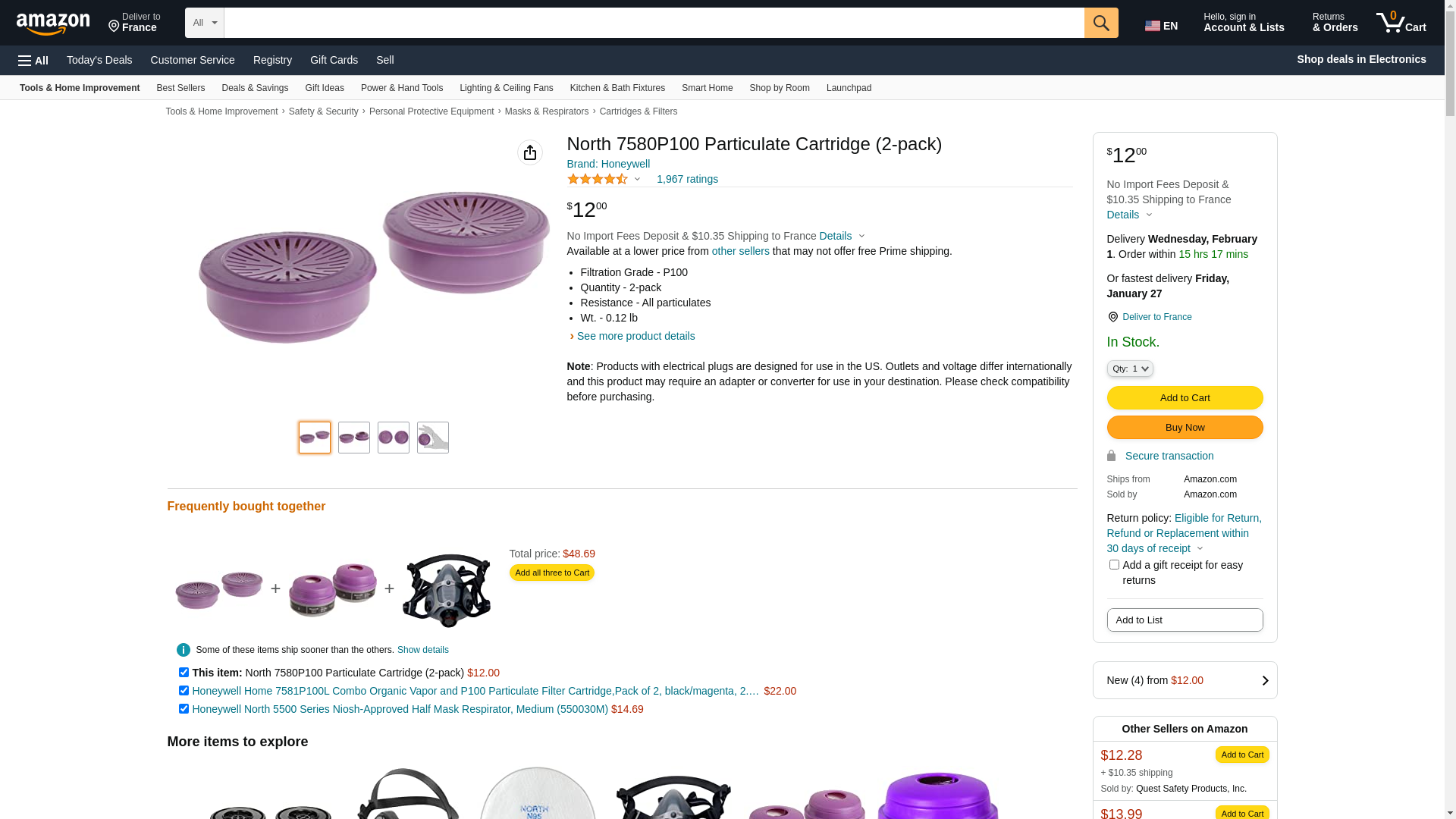 1 pair (pk) NORTH Honeywell 7580P100 Filter Cartridge P100 - 7600, 7700, 5400, 5500 series. 99.97%filter efficiency level against all particulate aerosols