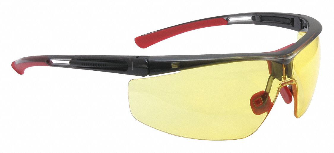 SAFETY GLASSES, WRAP-AROUND, UV-PROTECT, SCRATCH-RESIST, ANTI-FOG, CSA/ANSI, RED/AMBER, PC