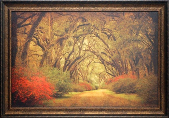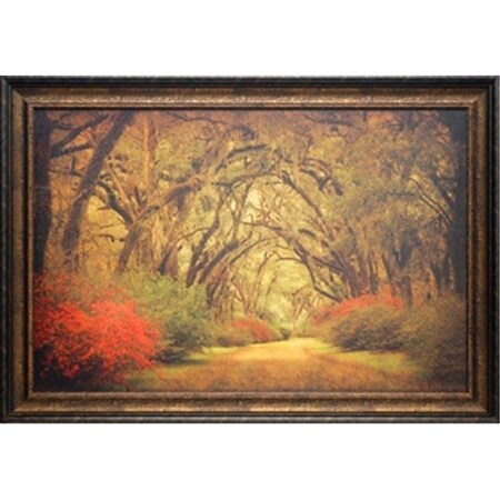 North American Art N1387 42 x 30 in. Road Lined with Oaks & Flowers Framed Landscape Art Print