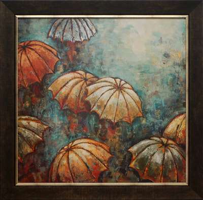 North American Art N1904 33.5 x 33.5 in. Umbrellas Framed Cityscape Art Print