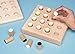 - Hardwood board measures 8" (21cm) square, and has a locking cover. The wooden pegs measure 9/10" (2.2cm) in diameter and 1-6/10" (4.0cm) in length.