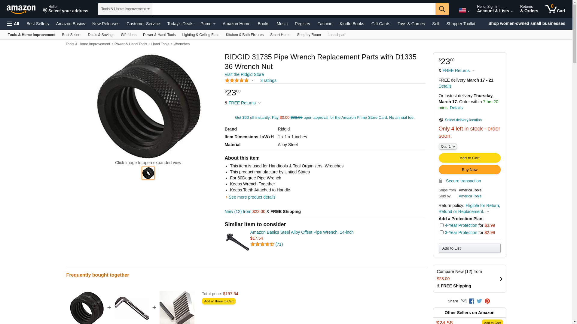 Ridgid 31735 Pipe Wrench Replacement Parts with D1335 36 Wrench Nut