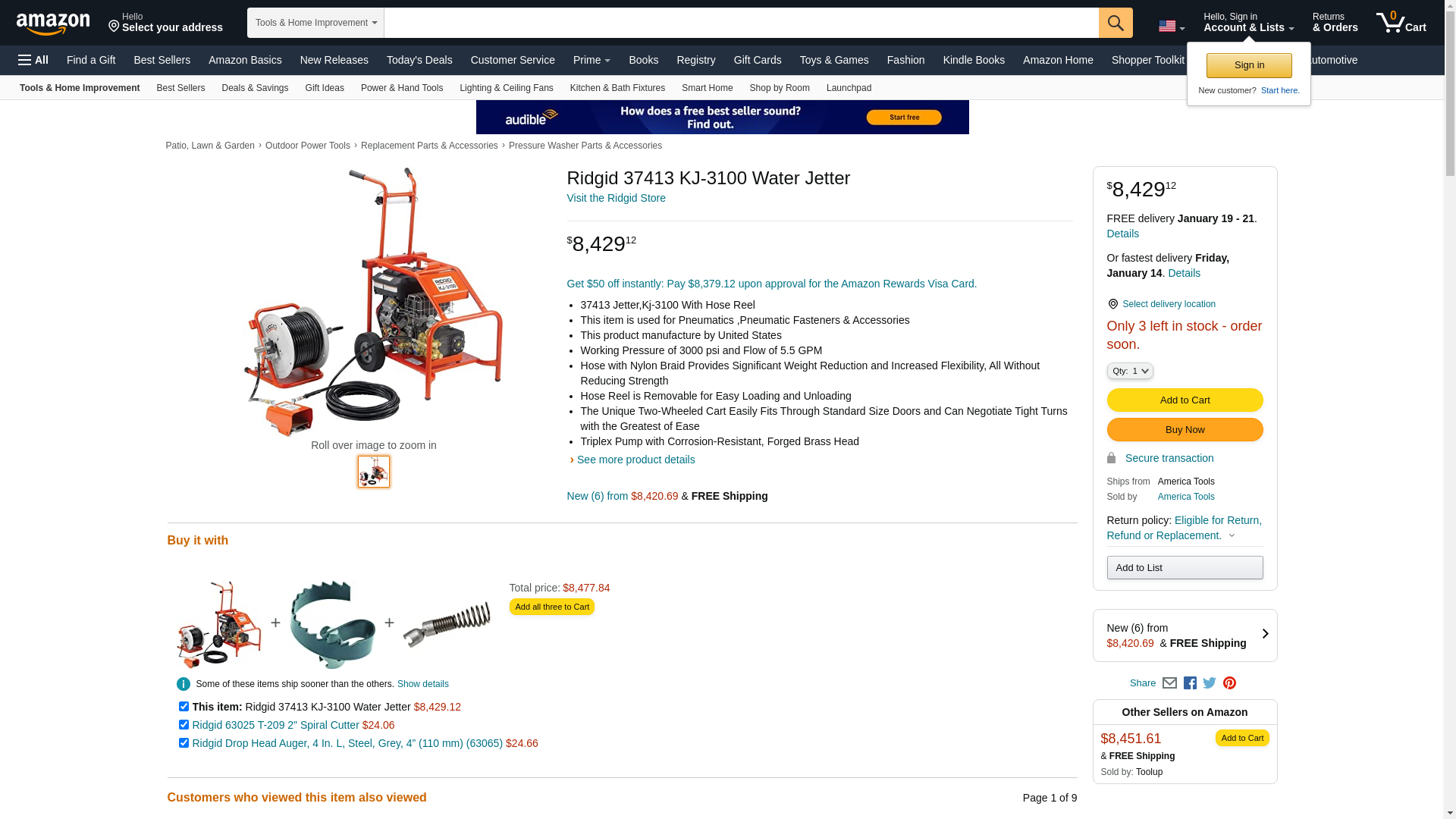 RIDGE ridgid37413 Ridgid Jetter,Kj-3100 With Hose Reel