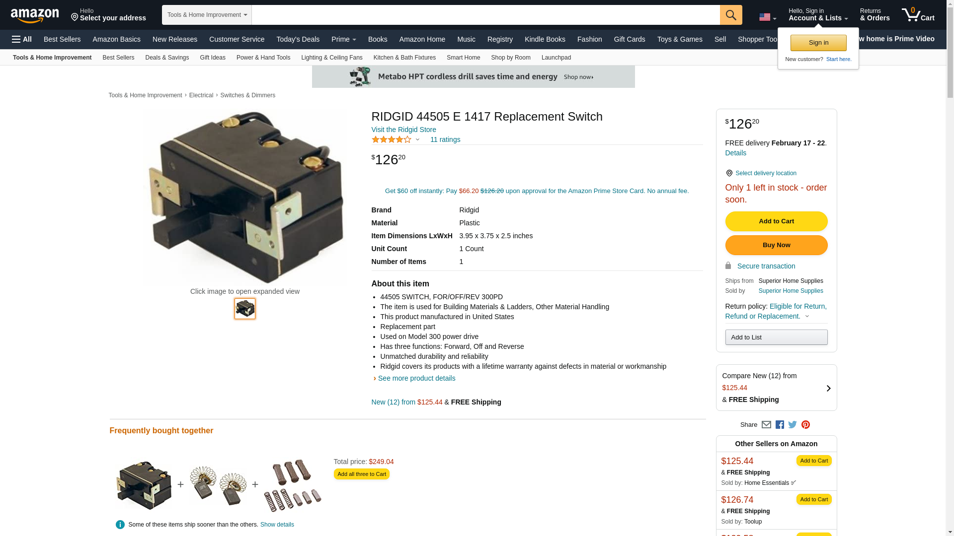 RIDGID 44505 E 1417 Replacement Switch
