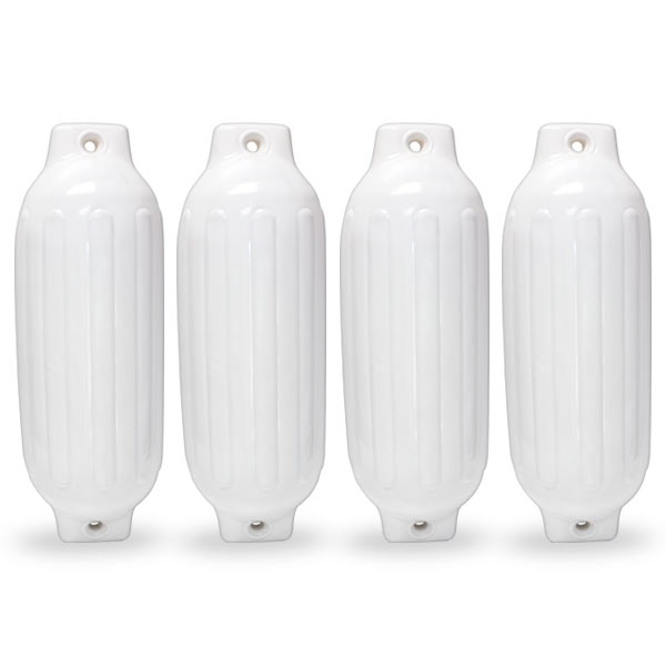 ***8.5" x 27" TWIN EYE RIBBED INFLATABLE BOAT FENDERS - SET OF FOUR (4)***<br/>***FEATURES INCLUDE:***<br><br>-Vertical ribs for extra protection <br>-Reinforced tube ends to prevent lines from being pulled through if the fender gets caught in a tight spot <br>-Fenders are shipped deflated to save shipping costs <br>-Can be hung Vertical or Horizontal <br>-Super-soft fenders are non-abrasive <br>-Quantity: Set of 4 Inflatable Boat Fenders <br>-Style: Twin Eye Ribbed <br>-Size: 8.5" x 27" <br>-Color: White</br><br>***DIMENSIONS: 10" x 28"***</br><br>***FENDER SIZING GUIDE<br> ***Recommended size for fenders by Boat Length:</br><br>***Boats up to 10 ft:*** 4.5" x 16" Twin/Single Eye<br> ***Boats from 10-30 ft:*** 6.5" x 23" Twin Eye<br> ***Boats from 15-40 ft:*** 8.5" x 27" Twin Eye</br><br>***Boats from 20-30 ft:*** 6.0" x 15" Center Hole<br> ***Boats from 30-40 ft:*** 8.0" x 20" Center Hole <br> ***Boats from 40-50 ft:*** 10" x 28" Center Hole <br><br> Consider using a larger size fender if mooring in high winds, rough water, or unprotected moorings. Many factors should be considered when determining what size fender to use. If in doubt, seek professional advice.<br><br> Important! Do not over-inflate as this will weaken the product and reduce its lifetime</br>
