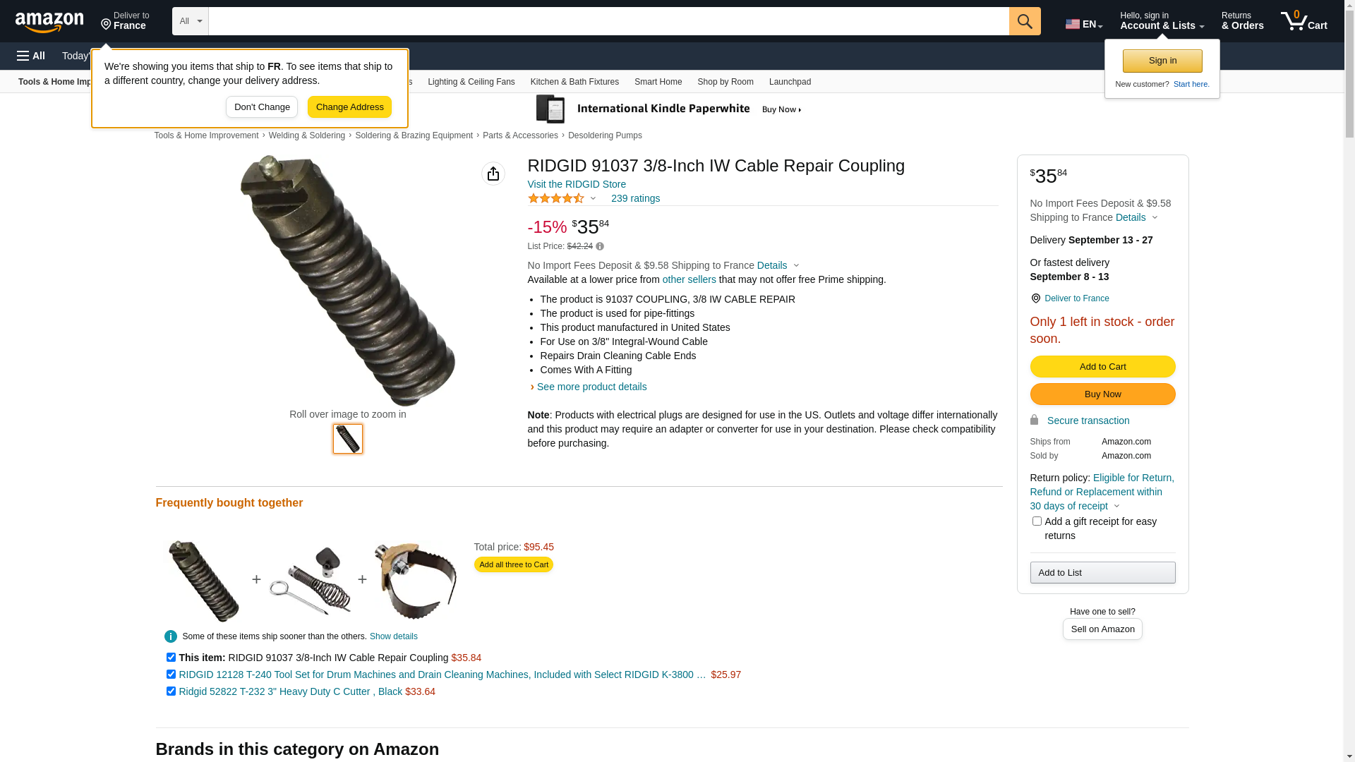 | Feature | The product is 91037 COUPLING, 3/8 IW CABLE REPAIR |