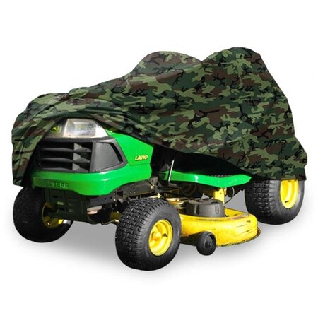 <br>Deluxe Riding Lawn Mower Cover. Protects your riding mower or lawn tractor against wind, rain, snow, sun, dust and dirt damage. Features a luxurious light weight fabric, 420 Denier polyester with heavy duty vinyl coating</br><br>*** FEATURES INCLUDE:*** </br><br><br>-Luxurious Light Weight Fabric to Protect your Riding Lawn Mower / Tractor<br>-Air Vents at Rear of Cover<br>-Drawcord Locking System<br>-Sewn in Elastic Cord for Snug Fit<br>-Provides All Weather Protection<br>-Storage Bag Included<br>-Color: Camouflage</br><br>*** Fits: All Riding Lawn Mowers / Tractors up to 54" Cutting Width (Deck)<br>*** Will not work with baggers or other attachments</br><br>*** PACKAGE INCLUDES:*** </br><br><br>-1x Riding Lawn Mower / Tractor Cover<br>-1x Storage Bag</br>
