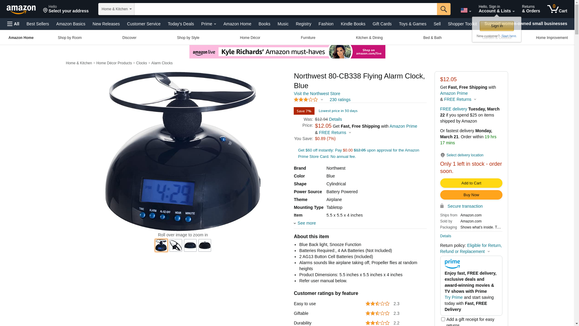 Northwest 80-CB338 Flying Alarm Clock with Blue Back Light
