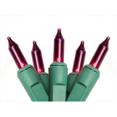 <b>Features</b> <ul> <li>If one bulb burns out the rest will stay lit.</li> <li>End-to-end connectors allow you to connect multiple sets together.</li> <li>Wire gauge - 22.</li> <li>Comes with replacement bulbs and fuse.</li> <li>UL listed for indoor, outdoor use.</li> <li>120 volts, 60 hertz, 0.34 amps, 40.8 watts.</li> <li>Color - Purple bulbs, green wire.</li> <li>Bulb size - Mini.</li> <li>Number of bulbs on string - 100.</li> <li>Spacing between each bulb - 3 in.</li> <li>Lighted length - 25 ft.</li> <li>Total length - 27.25 ft.</li> <li>Set of 100.</li> </ul>- SKU: GDNC7770