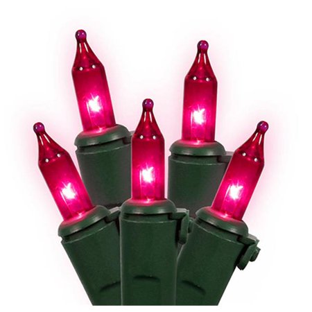 <b>Features</b> <ul> <li>Color - Pink bulbs / green wire.</li> <li>Number of bulbs on string - 100.</li> <li>Bulb size - Mini.</li> <li>Spacing between each bulb - 5.5 in.</li> <li>3.5 in. lead cord & 3 in. tail cord.</li> <li>These lights are made to commercial specifications.</li> <li>Super bright 2.5 volt bulbs.</li> <li>Lights are equipped with Lamp Lock feature, which makes them replaceable, interchangeable and keeps them from falling out.</li> <li>If one bulb burns out, the rest will stay lit.</li> <li>Wire gauge - 22.</li> <li>Contains end-to-end connectors which allows you to connect multiple sets together (not to exceed 210 watts).</li> <li>UL listed for indoor or outdoor use.</li> <li>Comes with replacement bulbs, flasher bulbs and spare fuses.</li> <li>120 volts, 60 hertz, 0.34 amps, 40.8 watts.</li> </ul>- SKU: GDNC7304