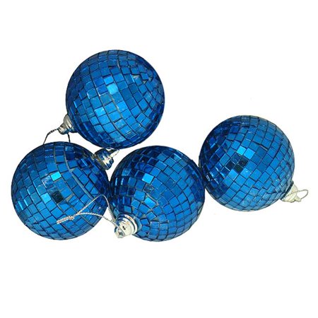 <p>Jazz up your holiday decor this season with these classic disco ball ornaments. Each ornament is covered with tiny square mirrors which will reflect light creating a dazzling lighting effect.</p> <b>Features</b> <ul> <li>4 Count</li> <li>Color - Ocean blue</li> <li>Ornament comes ready-to-hang on a silver cord</li> <li>Size - 4 in. diameter</li> <li>Materials - Glass/foam center/silver plastic cap</li> </ul>- SKU: GDNC4110