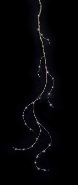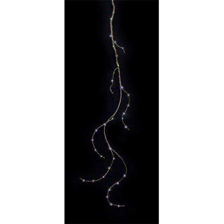 <b>Features</b> <ul> <li>Set of 36</li> <li>Bendable silver and bronze wire drop</li> <li>Color - Purple LED bulbs</li> <li>Number of bulbs - 36</li> <li>Bulb size - micro rice</li> <li>52 in. drop length</li> <li>11 in. black lead cord</li> <li>3-function controls on battery pack allow you to select different light settings such as steady on phasing flashing and off</li> <li>Built-in automatic timer function with 6 hours on and 18 hours off</li> <li>Requires 3 "AA" size batteries (not included)</li> <li>LED lights use 80% less energy</li> <li>Super bright bulbs</li> <li>If one bulb burns out the rest will stay lit</li> <li>Durable non-glass bulbs</li> <li>Cool to the touch</li> <li>UL listed for indoor use only</li> <li>Non-replaceable bulbs</li> <li>Cannot connect multiple sets together</li> <li>Materials - Plastic/wire</li> </ul>- SKU: GDNC8197