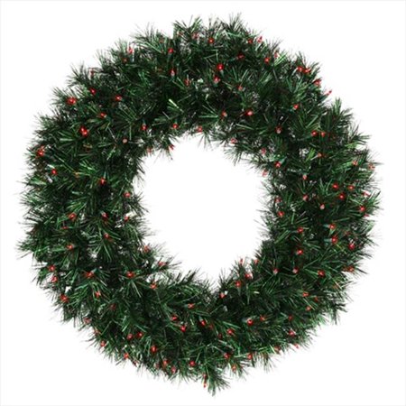 <p>This a mixture of green holographic tinsel and black PVC tips.</p> <b>Features</b> <ul> <li>Pre-Lit Midnight Green Pine Christmas Tinsel Wreath.</li> <li>Pre-lit with 100 red Dura-Lit mini lights.</li> <li>Dura-Lit lights are a true luxury. You can actually pull the bulbs right out of their sockets and all the other lights on the string will remain lit.</li> <li>200 branch tips.</li> <li>3.25 in. wide tips.</li> <li>23 in. green lead cord.</li> <li>No assembly required - wreath comes in 1 piece.</li> <li>Includes a heavy duty ring metal frame backing for hanging.</li> <li>Light sets on the wreath are UL listed for indoor or outdoor use, however the wreath itself is recommended for indoor use.</li> <li>If one bulb burns out, the rest will stay lit.</li> <li>Contains 1 plug with end connector which allows you to stack multiple lighted items together (not to exceed 210 watts).</li> <li>Wire gauge - 22.</li> <li>120 volts, 60 hertz,.34 amps, 40.8 watts.</li> <li>Material - Pvc/Tinsel/Metal.</li> <li>Dimensions - 30 in. diameter.</li> </ul>- SKU: GDNC2930