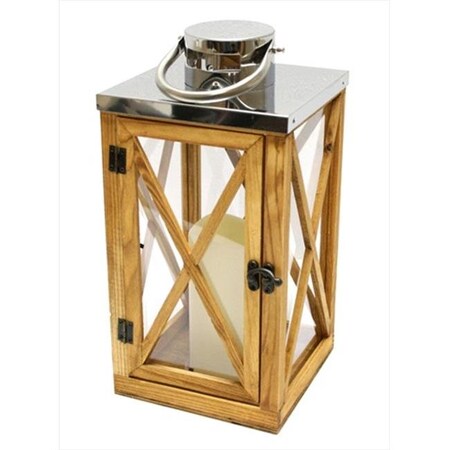 <b>Features</b> <ul> <li>Rustic lantern has a natural Wooden frame with Glass panes and a Shiny finished stainless steel top</li> <li>Beige bisque flameless pillar candle has the look of a real wax candle with the safety of battery operation</li> <li>Amber colored flame has a slight flicker Candle has two operation options; on/off and timer function</li> <li>Timer function will keep the candle on for 5 hours and then automatically go off.</li> <li>Candle will automatically come on at the same time the next day.</li> <li>On/off and timer switch on bottom</li> <li>Candle uses (3) AAA size batteries (included) LED light is cool to the touch Recommended for indoor use only</li> <li>Dimensions - 13.5 H x 6.5 W x 6.5 D in.</li> <li>Materials - Wood, stainless steel, Glass, Resin, Plastic</li> </ul>- SKU: GDNC844