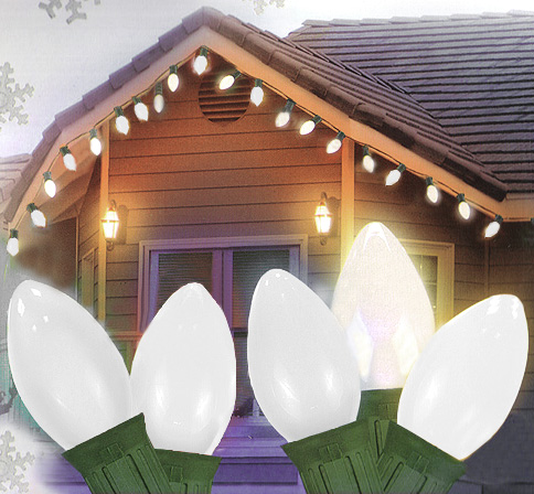 NorthLight White Ceramic C9 Christmas Lights 12 in. Spacing - Green Wire, Set Of 25