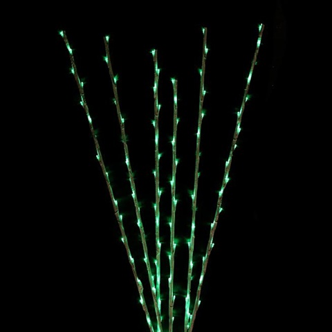 Create a melancholy Christmas spirit and celebrate the season in style with these green LED lighted branch spray pathway markers. Perfect for lighting up your walkway or driveway, these unique pathway markers bring out an elegance to your space. Enjoy the holidays in lighted style. Product Features:. Pre-lit with 40 lights per branch. Bulb color: green (lights are clear on product but when lit will show color). Bulb size: micro. Twig color: white. Total lighted length: 6'. Space between branches: 20". Lead cord: 5' Additional product features:. UL certified and approved for indoor or outdoor use. Hand wrapped stems. Black adapter included and stakes included. Cannot connect multiple stems together, each will require their own power source. Adapter input: 120 volt AC, 60 hertz, .08 amps. Adapter output: 28 volt AC, .107 amps Material(s): glass bulbs/PVC/plastic/various man made materials