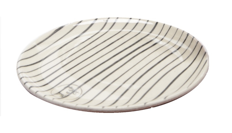 Northlight Seasonal 31523406 Basic Luxury Decorative Black Stripes on White Round Terracotta Dessert Salad Plate 6.5 in.