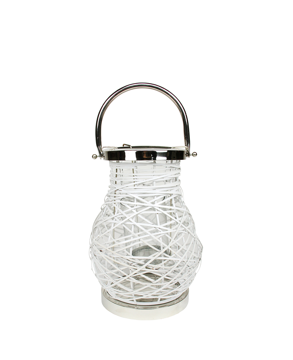 Northlight Seasonal 31580075 Modern White Decorative Woven Iron Pillar Candle Lantern with Glass Hurricane