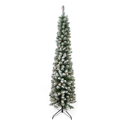 NorthLight 6 ft. x 20 in. Pre lit Flocked Traditional Green Pine Pencil Artificial Christmas Tree, Clear Lights