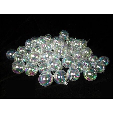 Make use of these shatterproof ornaments to augment your Christmas decoration. This exclusive assortment will allow you to build your collection quickly and decorate with more possibilities. Add them to your trees and garlands for an exquisite accent. Product Features:. 60-piece set. Color: clear iridescent. Finish: shiny. Balls are equipped with silver ornament caps covering a tiny pin hole size opening. Ornaments come ready-to-hang on silver cords. Recommended for indoor decorative use only. Ornaments are shatterproof for your safety and convenience Dimensions: 2.5" (60mm) diameter. Material(s): plastic Set includes 60 of the ball ornaments