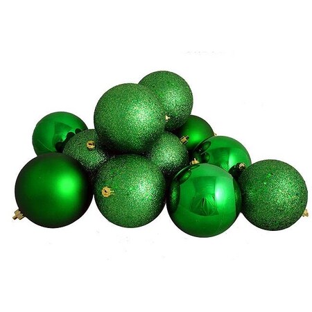 Northlight 12ct Green Shatterproof 4-Finish Christmas Ball Ornaments 4" (100mm)