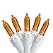 Your Christmas gatherings, family events, and birthday celebrations will sparkle when you incorporate this set of beautiful mini Christmas lights to your home decoration. These lights are increasingly agreeable to twist in various shapes until you make your ideal improvement. They are sure to speculate a captivating illumination for your home! Product Features:. Color: orange bulbs / white wire. Number of bulbs on string: 100. Bulb size: LED mini. Spacing between each bulb: 4". Lighted length: 33'. Total length: 34.25'. 12" lead cord. 3" tail cord Additional Product Features:. LED lights use 90% less energy. Durable non-glass replaceable bulbs. Cool to the touch. UL certified and approved for indoor or outdoor use. If one bulb burns out, the rest will stay lit. Lights are equipped with Lamp Lock feature, which makes them replaceable, interchangeable and keep them from falling out. Comes with replacement bulbs and spare fuses. Contains end-to-end connectors which allow you to connect multiple sets together (not to exceed 210 watts). Wire gauge: 22. 120 volts, 60 hertz, .04 amps, 4.8 watts
