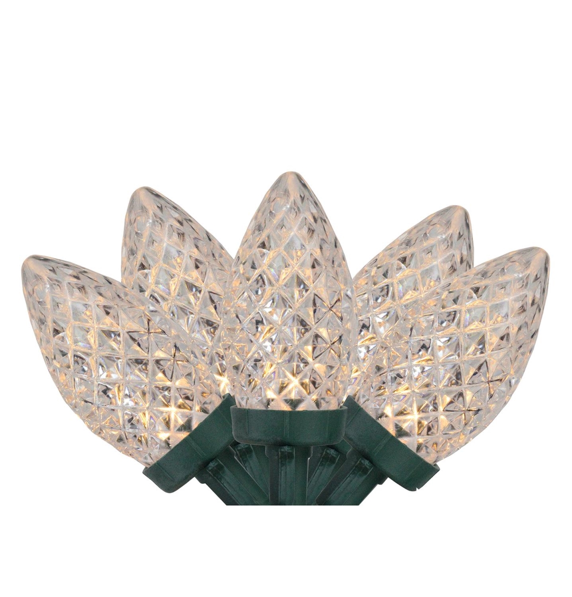 Northlight 32614125 Warm White Faceted LED C9 Christmas Lights & Green Wire - Set of 100