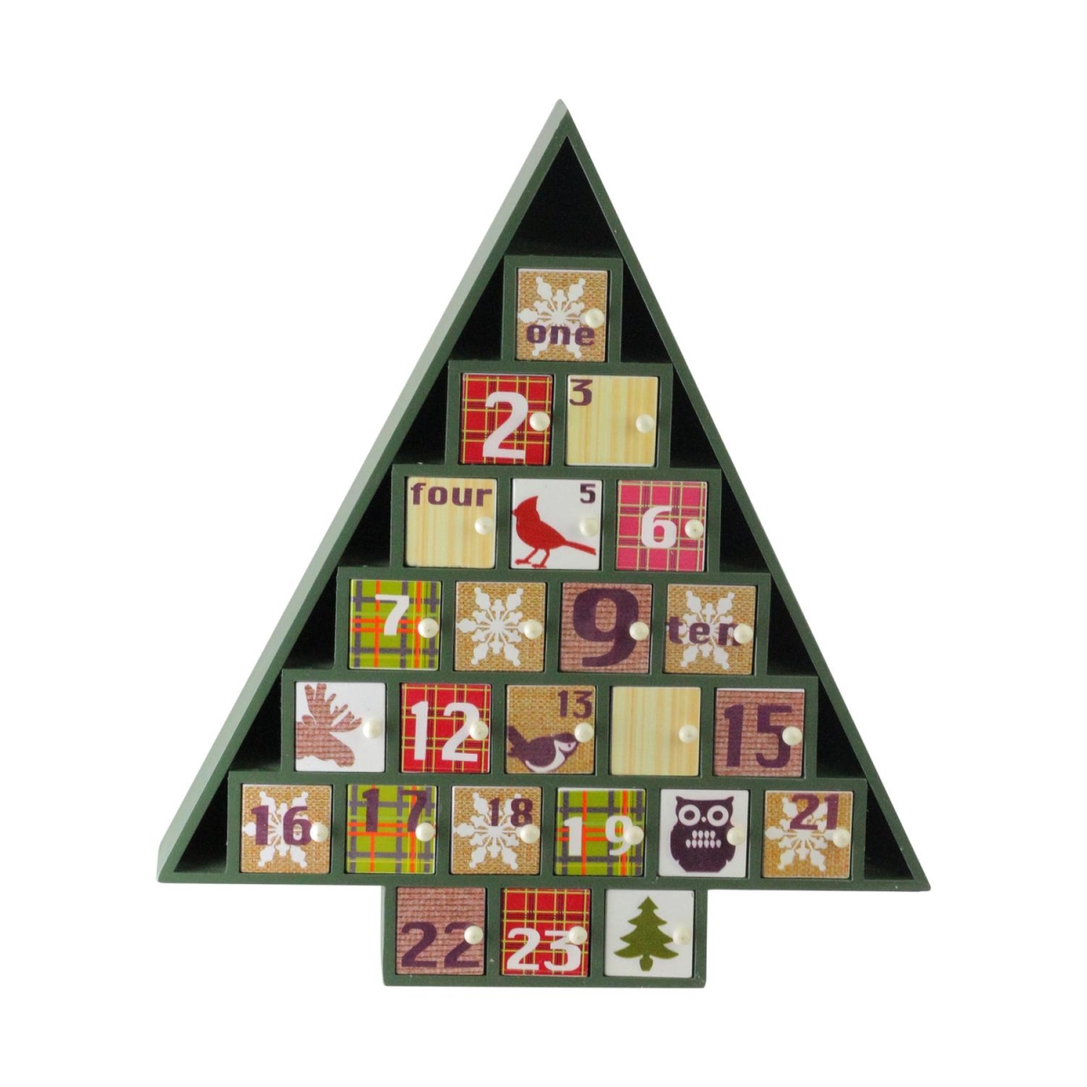 Northlight 32634949 14 in. Rustic Green & Red Plaid Decorative Tree Shaped Advent Christmas Calendar