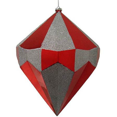 <b>Features</b> <ul> <li>Giant commercial size</li> <li>Shatterproof Christmas ornament</li> <li>This over-sized diamond shaped ornament will make a dramatic impact wherever you hang or display it!</li> <li>Features alternating shiny merlot and glittered silver panels</li> <li>Shatterproof ornaments combine the beauty and luster of real glass with the unbreakable practicality of plastic.</li> <li>Measures: 18 H x 10 W in.</li> <li>Material - Heavy duty plastic, glitter</li> <li>Fully Dimensional</li> <li>Comes ready-to-hang on a silver cord</li> </ul>- SKU: GDNC6782