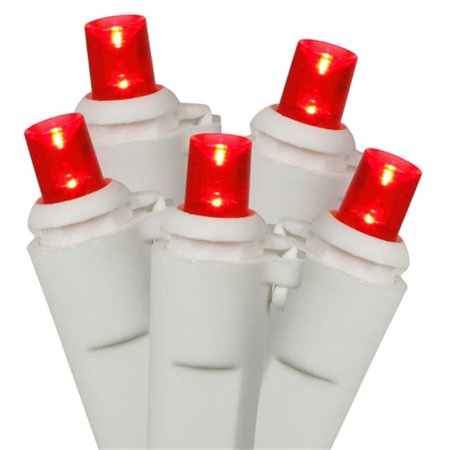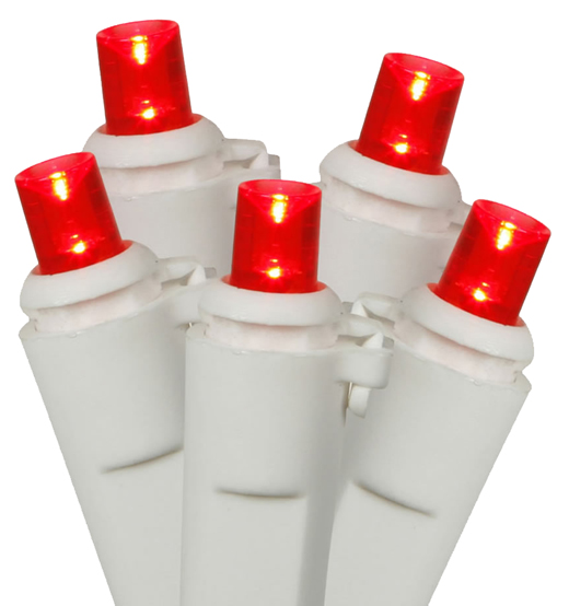 <b>Features</b> <ul> <li>LED lights use 90% less energy.</li> <li>Lights are equipped with Lamp Lock feature which makes them replaceable interchangeable and keeps them from falling out.</li> <li>Super bright bulbs.</li> <li>Bulbs last up to 100 000 hours.</li> <li>If one bulb burns out the rest will stay lit.</li> <li>Durable non-glass replaceable bulbs.</li> <li>Cool to the touch.</li> <li>End-to-end connectors allow you to connect multiple sets together.</li> <li>Commercial grade lightsWire gauge - 22.</li> <li>Comes with replacement bulbs and fuse.</li> <li>UL listed for indoor, outdoor use.</li> <li>120 volts, 60 hertz, 0.08 amps, 9.6 watts.</li> <li>Color - Red bulbs, white wire.</li> <li>Number of bulbs on string - 100.</li> <li>Bulb size - Concave wide angle Spacing between each bulb - 4 in.</li> <li>Lighted string length - 33 ft.</li> <li>Total string length - 34 ft.</li> <li>Set of 100.</li> </ul>- SKU: GDNC7748