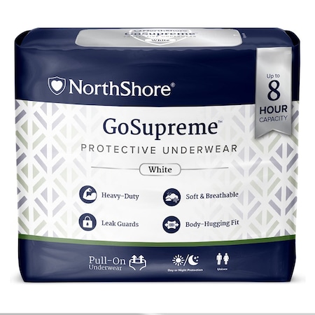 <p>NorthShore GoSupreme super-absorbent disposable underwear are premium pullups eliminate worry about leaks with maximum absorbency and dryness for day or night. GoSupreme incontinence underwear adult diapers are unisex and ideal for men, women, and larger children including those with special needs. GoSupreme disposable incontinence briefs provide reassuringly strong protection for even the heaviest bladder and/or bowel control leaks or floods.</p><p>Super-premium pullon adult diapers with a waterproof, yet breathable exterior resists sagging, odors, leaks and tears to stay dry for up to 8 hours. The double layer, high-capacity absorbent core is ideal for nighttime incontinence, bedtime leaks, extended time away from home during the day and managing bowel incontinence.</p><p>Specifically designed to contain heavy urinary and urge incontinence, these nappies boast tall leak guards and a thick, quick wicking core making them one of the most thirsty adult pullups, ensuring both security and peace of mind. Whether for daytime activities or overnight wear, GoSupreme are perfect for those seeking extended wear and maximum protection.</p><p>GoSupreme goes above and beyond for unparalled security and dryness with quick-drying absorbent polymers and extra coverage in front and rear for lockdown protection even for side sleepers. NorthShore incontinence underwear deliver extended dryness, surpassing leading store brands with up to three times more absorbency.</p><p>Rediscover confidence and comfort with a product that consistently stays dry without worry when all else fails. NorthShore's GoSupreme adult and youth incontinence underwear are ideal for anyone managing with OAB, bedwetting or neurogenic bladder to eliminate nighttime changes and wet linens or clothing in the morning including caregivers for adults or children with special needs, seniors or anyone needing extra protection.</p>