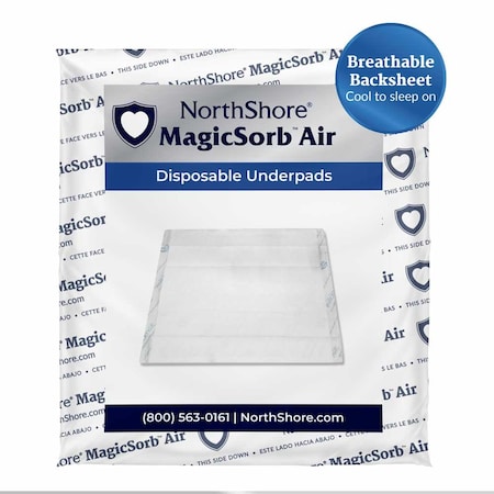 MagicSorb Air underpads are air permeable allowing them to reduce heat buildup and skin breakdown. Two times MORE absorbent than other underpads, they lessen the need for multiple pad use. MagicSorb Airs are heavy-duty to resist tearing as individual moves on the underpad or needs repositioning. Features a super strong non-woven breathable, fluid-proof backsheet. They are latex-free which offers protection for those with sensitive skin. (1 Pack of 10 Underpads)