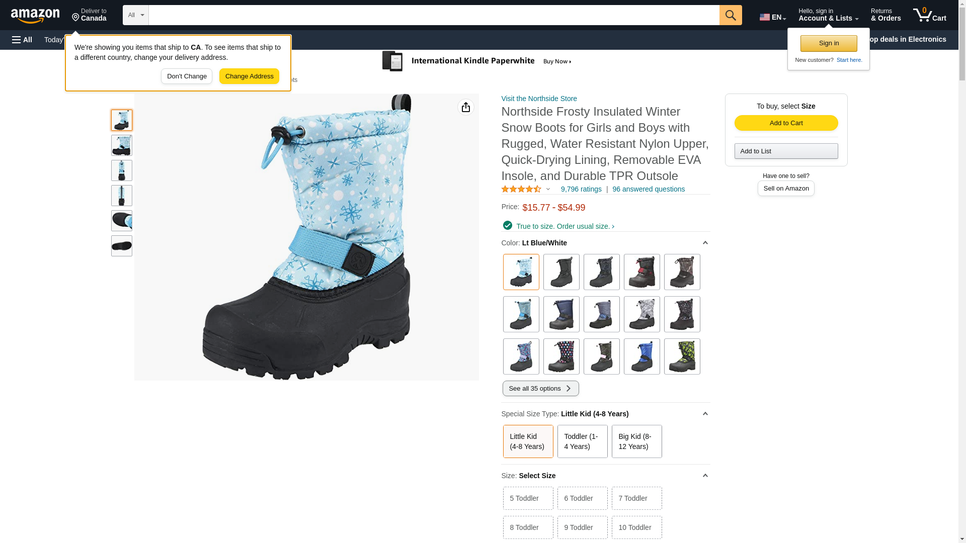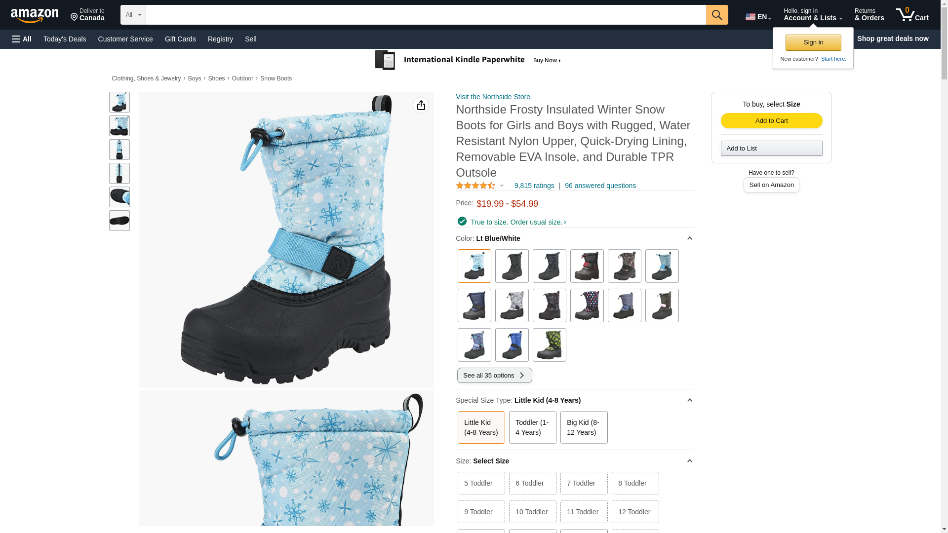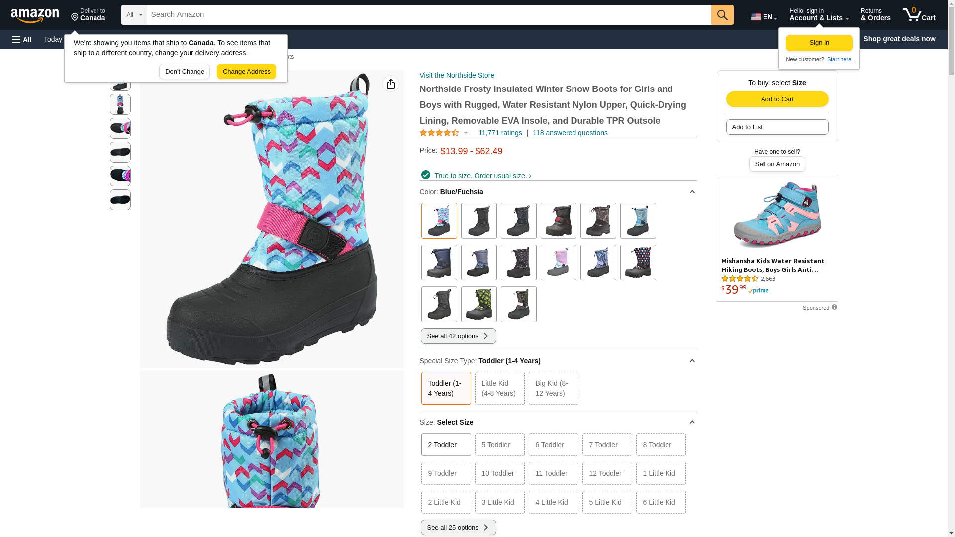 - The Frosty offers a water resistant construction with quick drying lining to keep little feet dry; an adjustable toggle collar keep debris out.