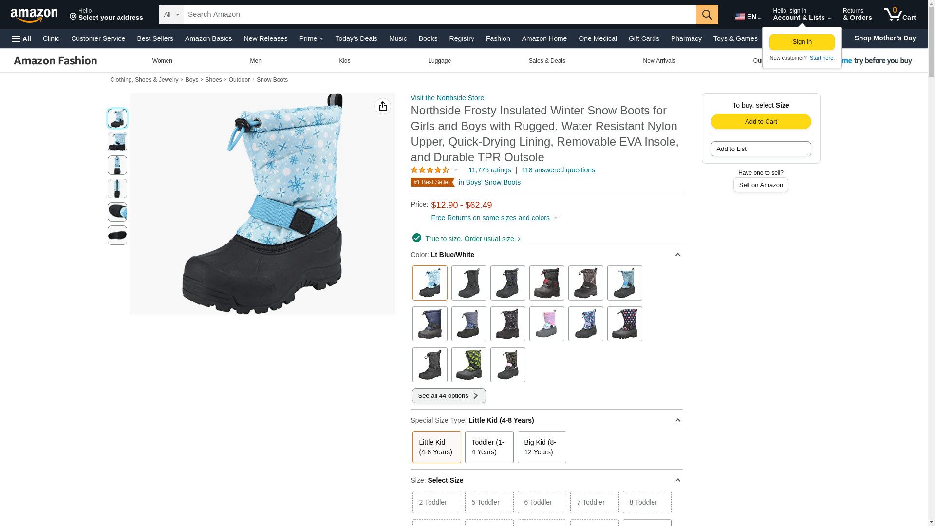 Northside Kid's Frosty Insulated Winter Snow Boots - Lt Blue/White, 12 Little Kid