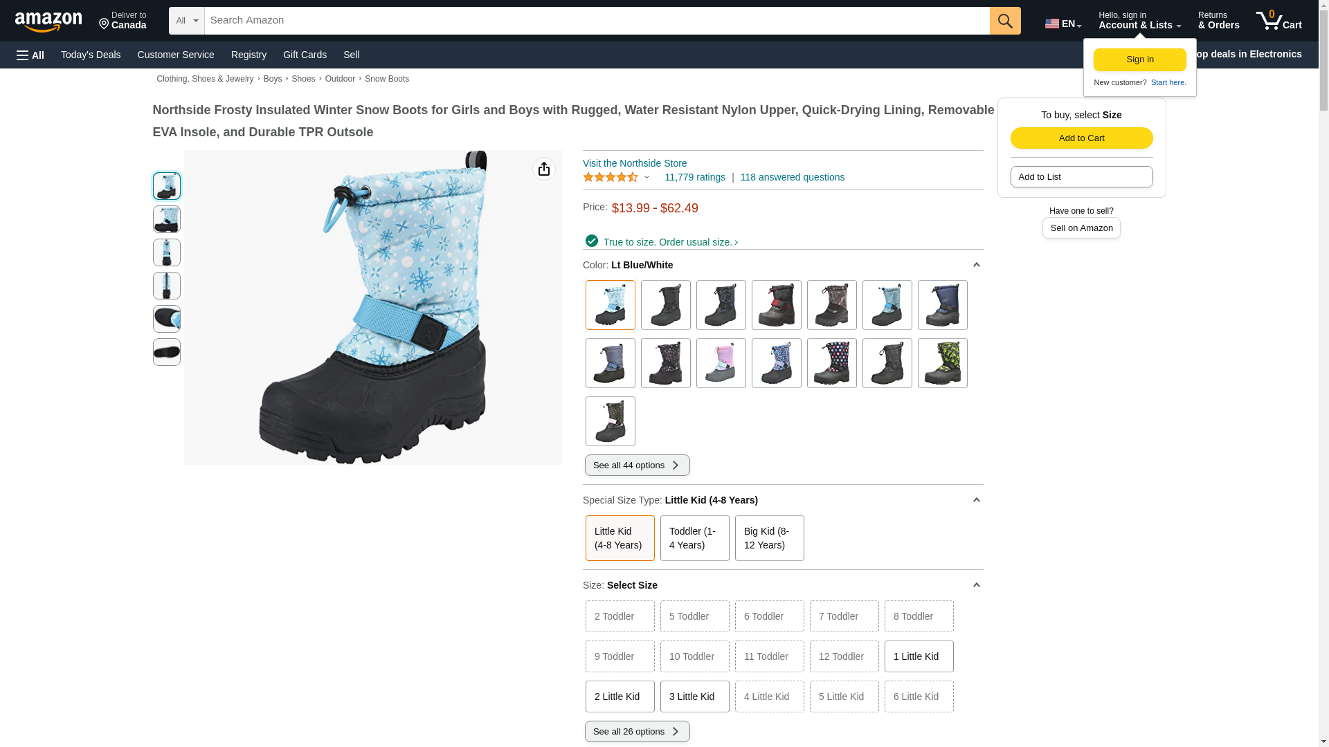 - This cold weather snow boot offers a water resistant construction with quick dry lining to keep little feet dry; adjustable toggle collar to keep debris out.