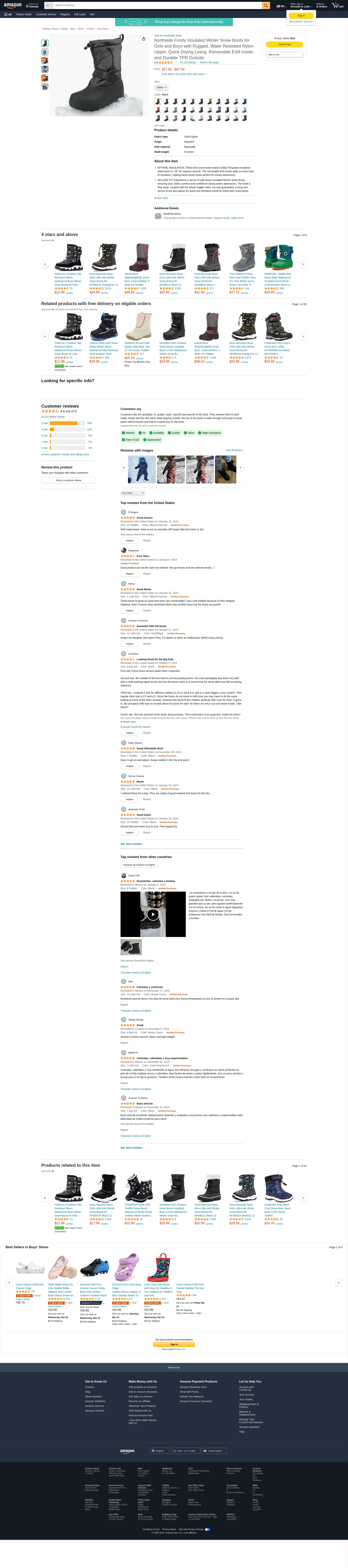 - This cold weather snowboot offers water resistant construction with quick drying lining to keep little feet dry; an adjustable toggle collar keep debris out