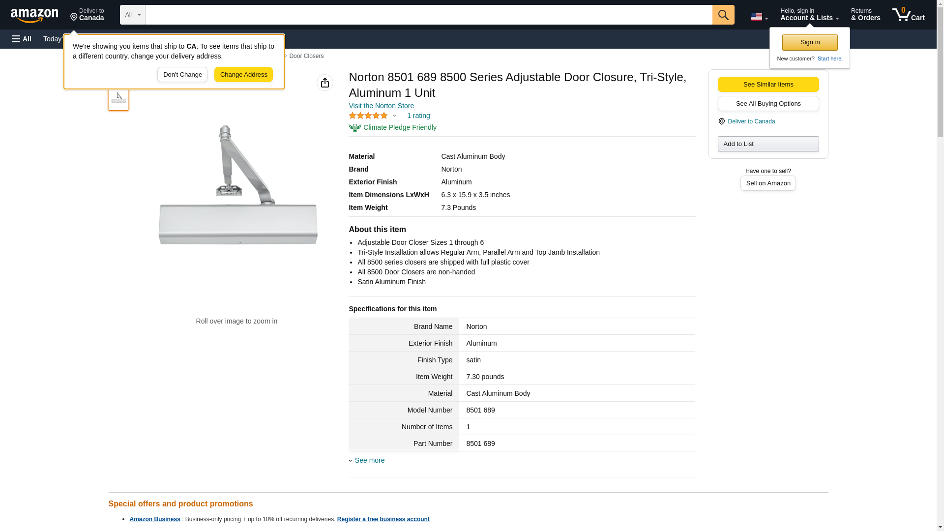 Norton 8501 689 8500 Series Adjustable Door Closure, Tri-Style, Aluminum 1 Unit