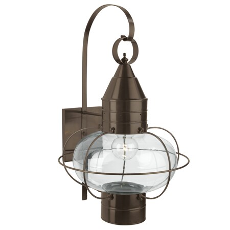 Norwell Lighting 1509 Features: -One light large outdoor wall lantern. -Classic Onion collection. -Available in Black, Bronze or Gun Metal finish. -Brass construction. -Shade shape: Oval. -Traditional and classic style. -Light direction: Down. -UL listed for wet location. -Made in USA. Specifications: -Accommodates (1) 100W incandescent Edison base bulb. -Overall dimensions: 24" H x 14.5" W. Finish: Bronze, Glass Type: Clear