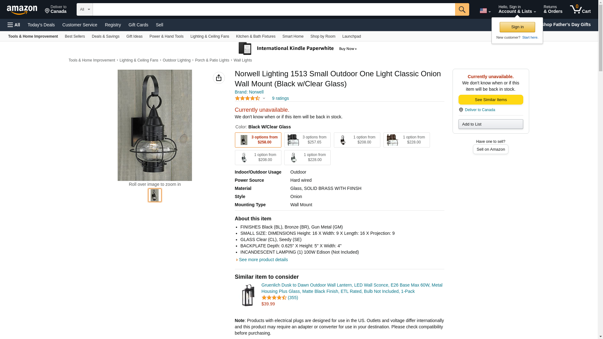 Norwell Lighting 1513 Small Outdoor One Light Classic Onion Wall Mount (Black w/Clear Glass)