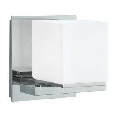 5311-CH-MO Contemporary / Classic style 1 light Icereto Sconce in Chrome finish with Matte Opal Glass diffuser. The clean modern lines of the Icereto lighting series uses vertical and horizontal planes to create the perfect contemporary accent Light Bulb Data: 1 Halogen 60 watt. Bulb included: Yes. Dimmable: yes.