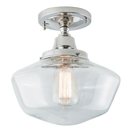 Schoolhouse 1 Light Flush Mount in Polish Nickel with Clear Glass