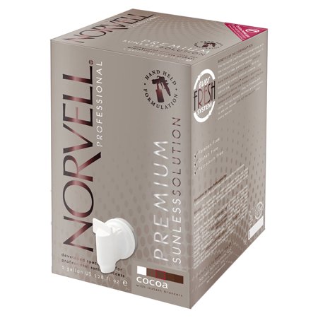 Get an extra color boost with Norvell's Cocoa Bronzing solutions. Norvells Award Winning Premium Solutions utilize micro-nutrient technology to deliver a potent blend of vitamins and antioxidants to boost the skins just off the beach glow. The formula works with all skin types regardless of color tone, creating a customized shade of bronze for each individual client. Scented formulas are fragranced with allergen-free essence of raspberry and almond extracts.