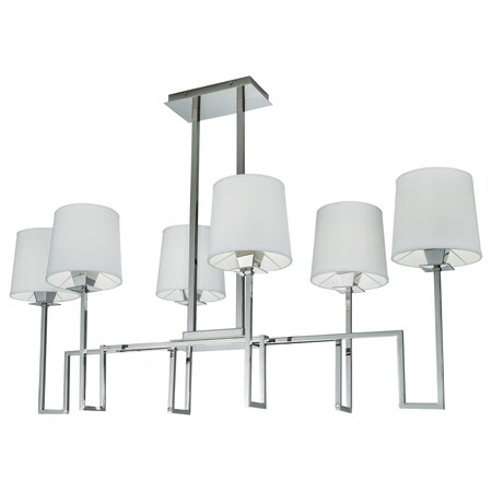 Norwell Lighting 9678-PN-WS Maya - Six Light Linear Chandelier, Polished Nickel Finish with White Fabric Shade