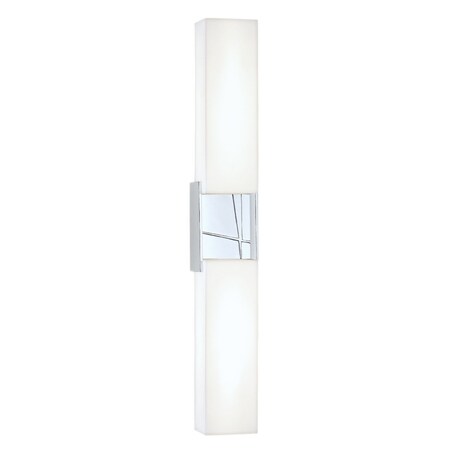 Twin matte acrylic diffusers are joined y an asymmetrical metal bracket to maintain a slim profile. <UL>Warranty: 5 Years<LI>Color Temperature: 3000 / Lumens: 2000 / Mounting Direction: Up & Down / Assembly Required: Yes / Shade Included: Yes / Dimable: Yes.